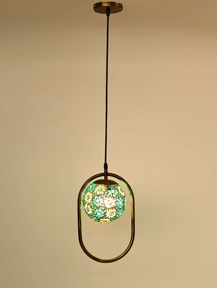 - » decorative oval type hanging mosaic ceiling light/ lamp with colorful glass shade, pack of 2 lamps