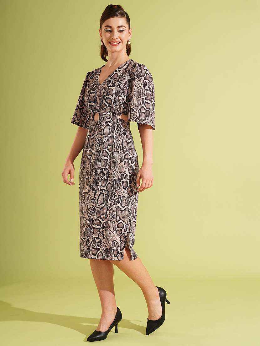 - » globus women multi-colour v-neck animal print cut-out side slit a-line party dress