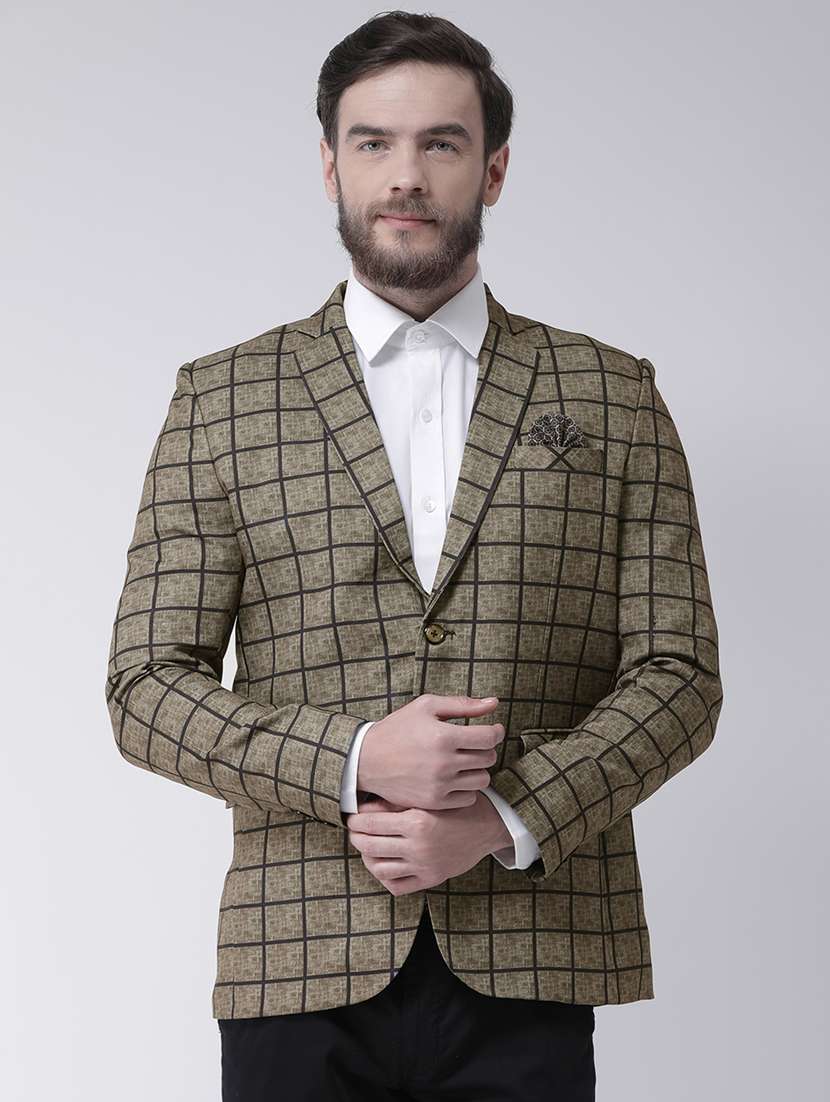 olive check polyester blazer