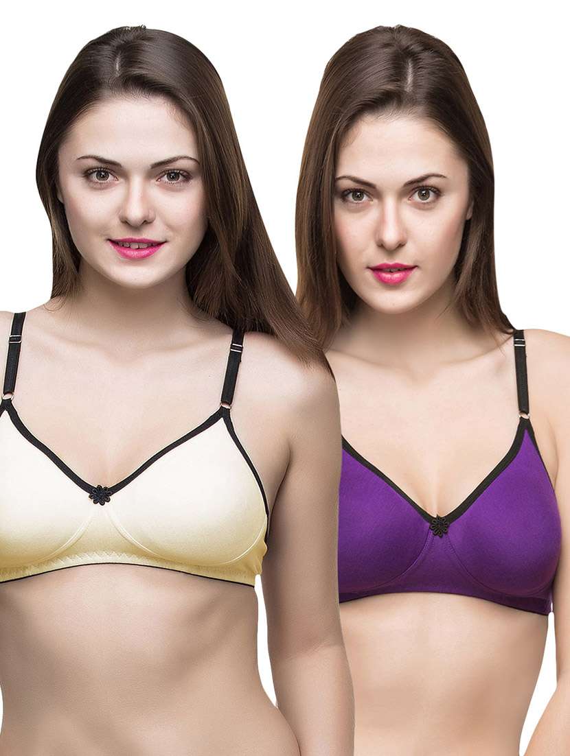 For perfect fit under T-shirts, Docare offers this purple and skin pack of 2 T-shirt bras. Comprising on solid and this pack is worth investing in. Finished with adjustable straps, these bras can also be worn under off-shoulder tops. The full coverage ensures amazing fit and look. Designed using cotton hosiery fabric, these bras are comfortable and stretchable too.