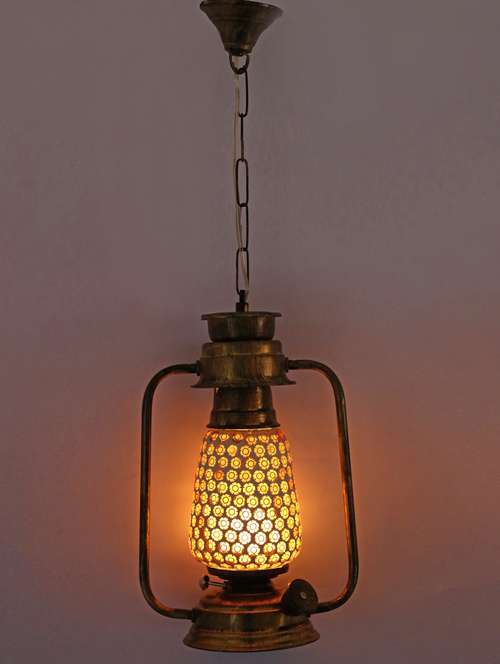antique pendant hanging lantern lamp light with colorful glass - 14131924 - Very Small Image - 1
