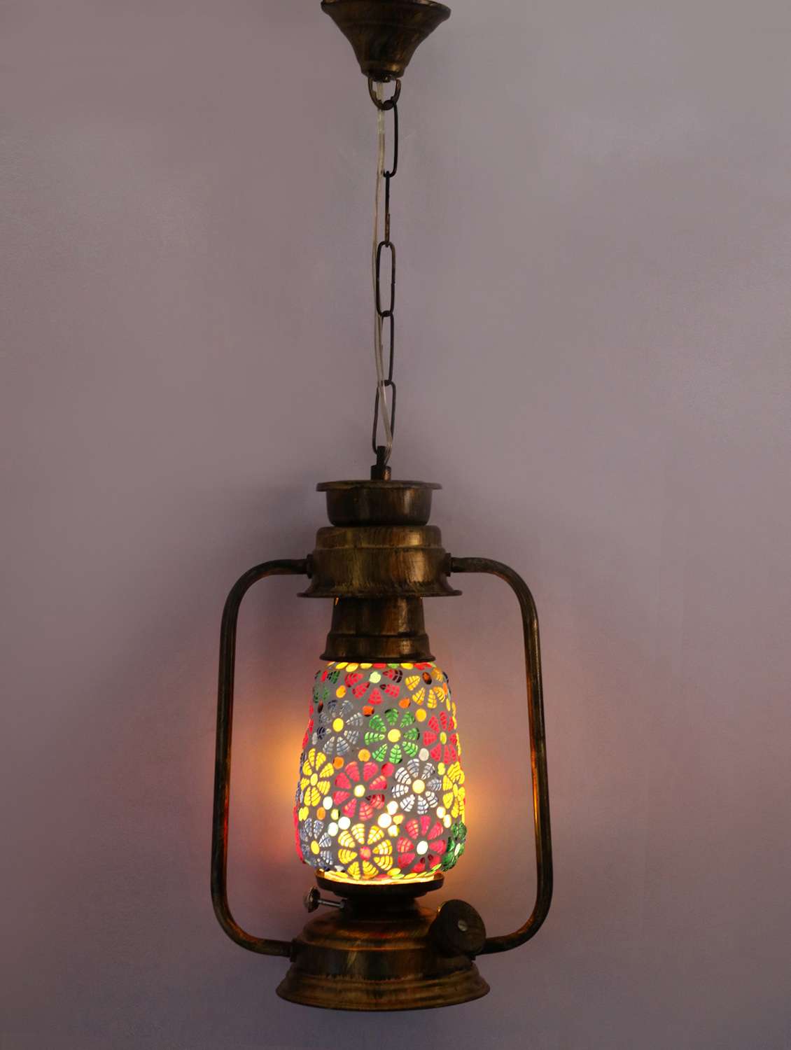 antique pendant hanging lantern lamp light with colorful glass
