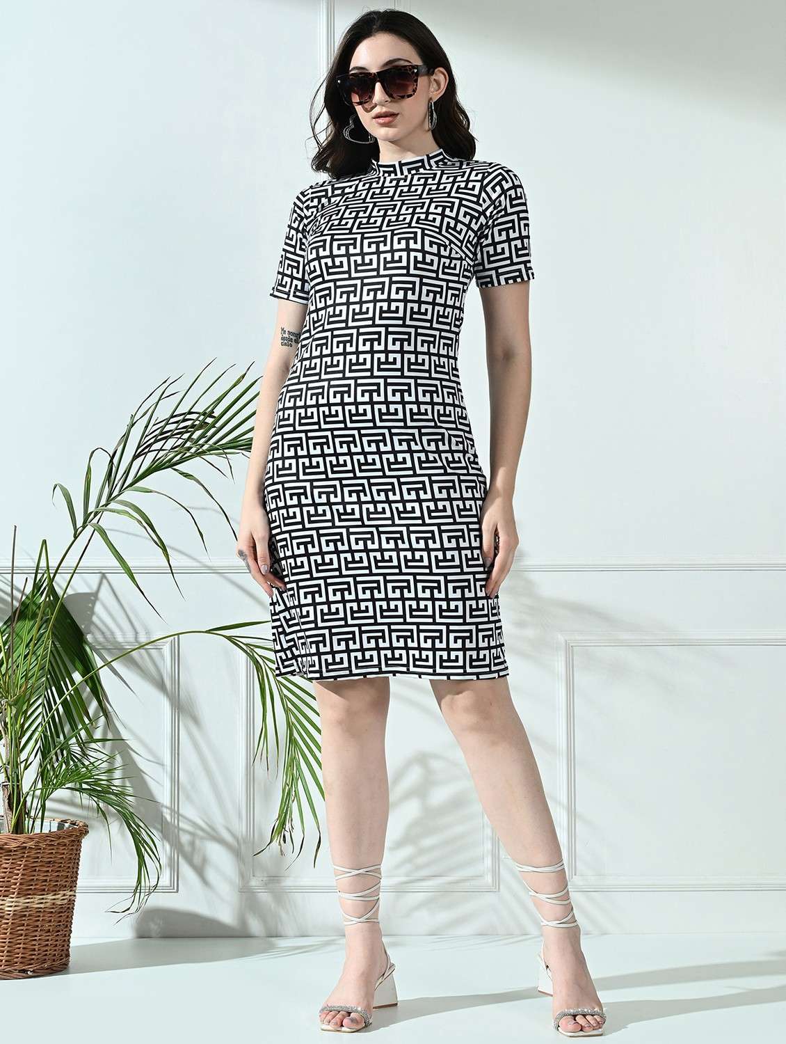 women geometric printed short sleeves shift dress - 21520548 - Very Small Image - 1