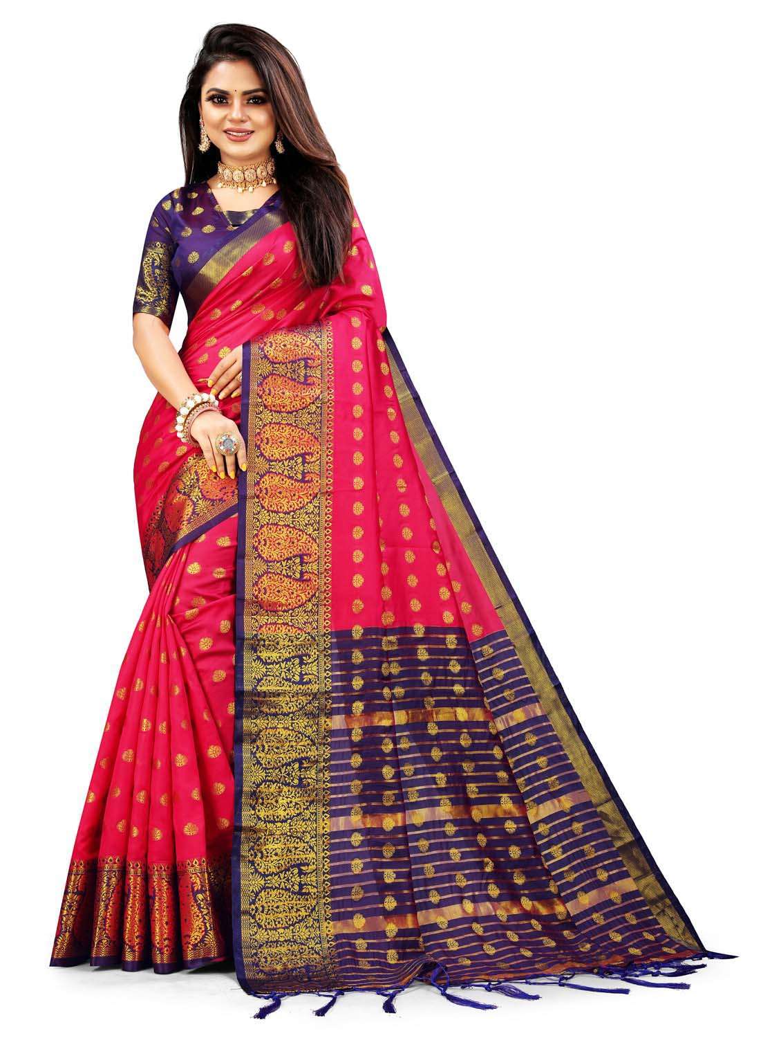 - » women's self design pink colored saree with blouse