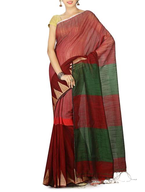 red woven saree with blouse - 14784327 - Very Small Image - 1