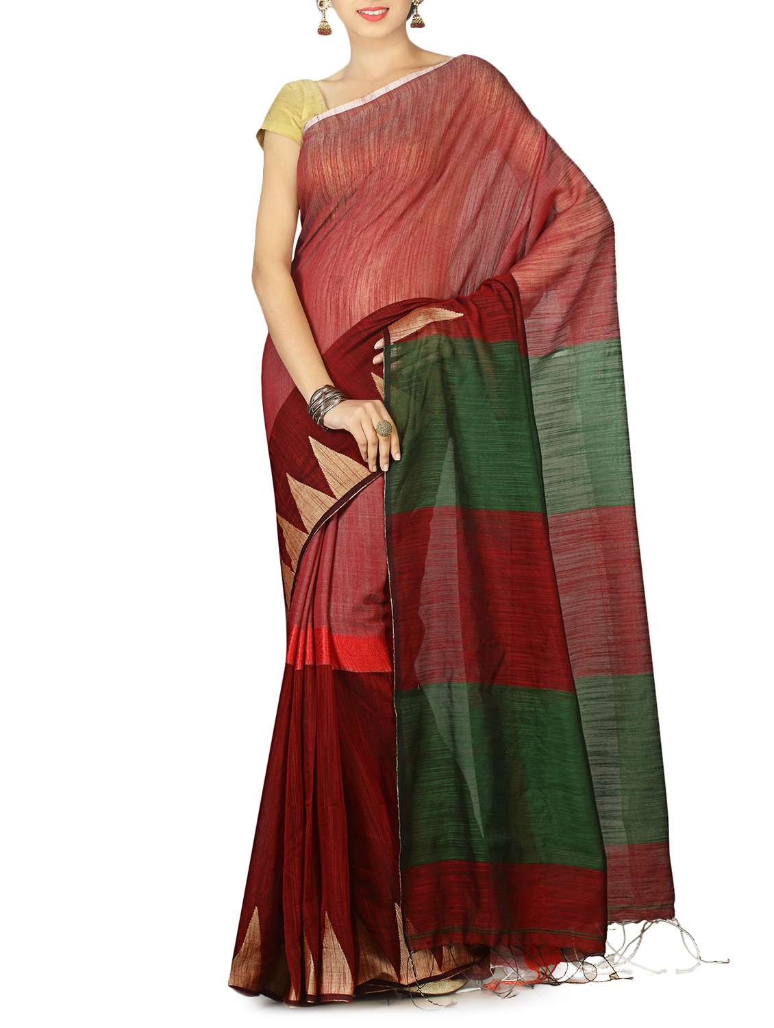 red woven saree with blouse