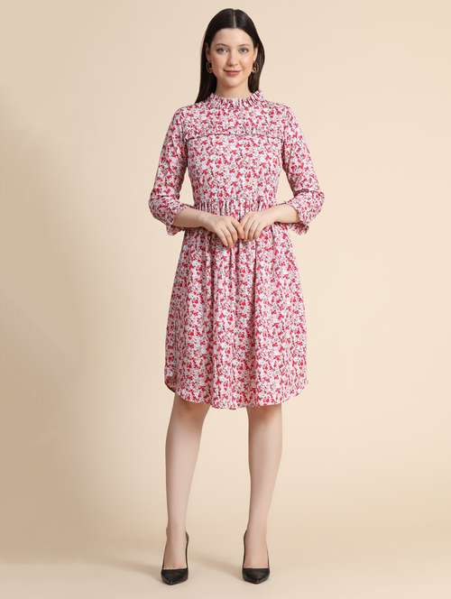 - Dress up in a soothing pattern and don this dress made of polyester material.