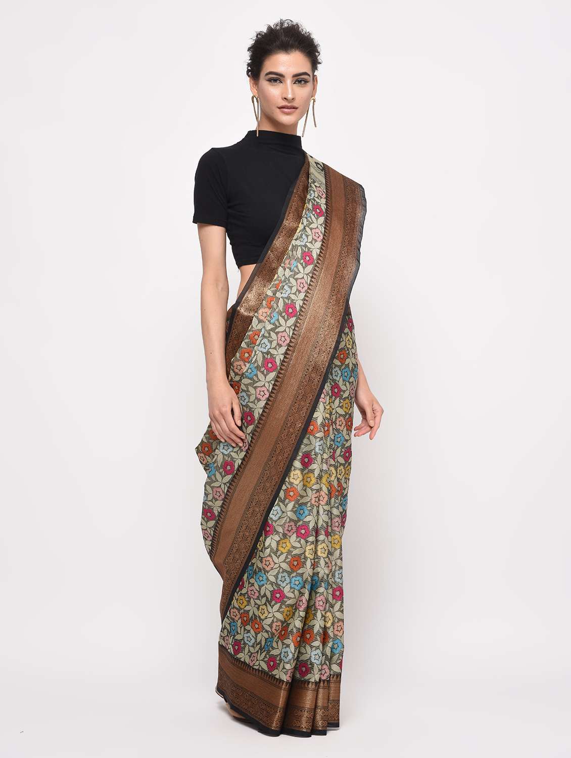 - » floral zari motif banarasi saree with blouse