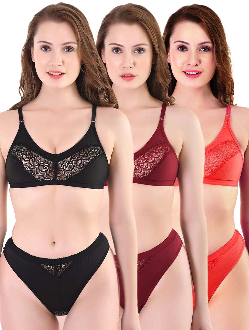 - » pack of 3 solid bra and panty set