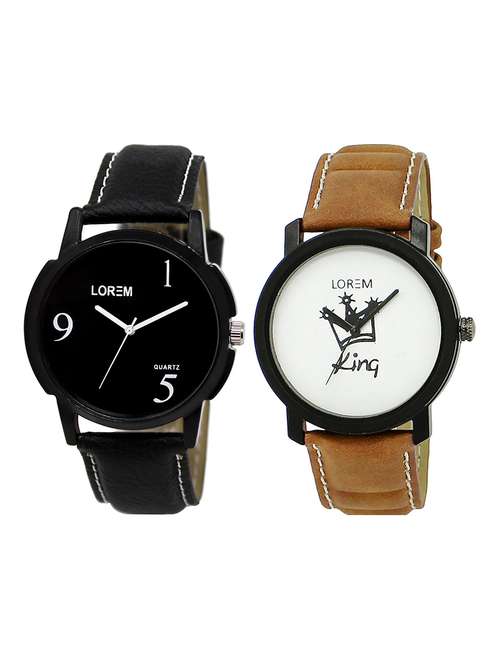 lorem lr27-29 grey & black round boy's leather wrist watch
