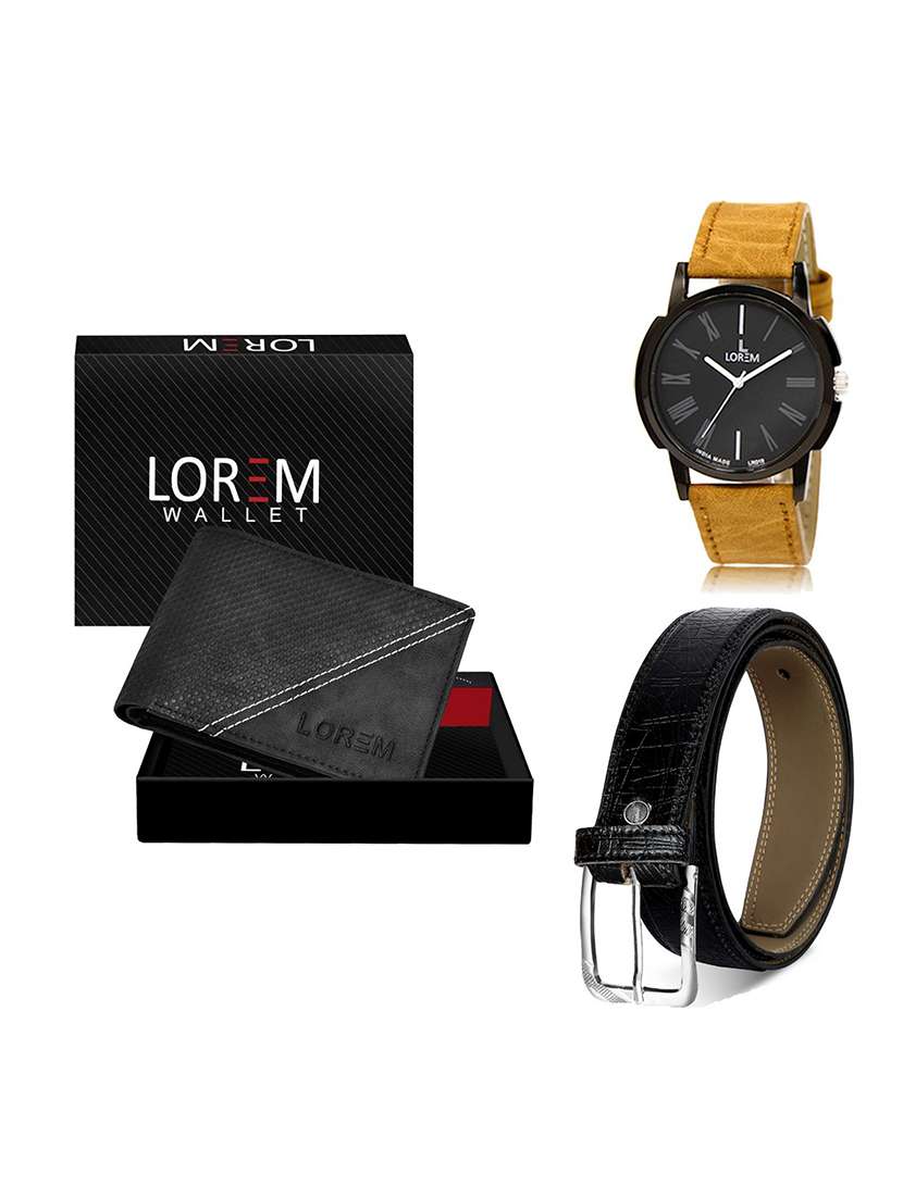 belt, wallet & watch leatherette gift combo - 19554318 - Very Small Image - 1