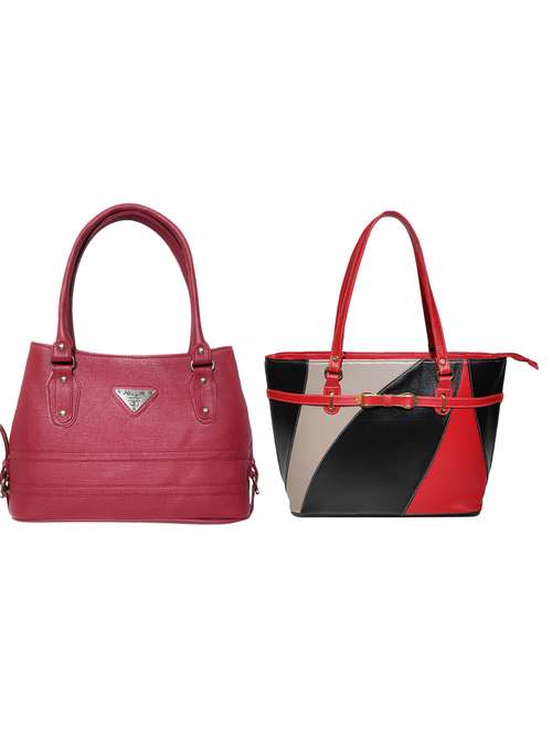 AZED Collections Women's PU Leather Handbag - Combo Pack of 2 -Maroon & Black (H004MN_H005BK)