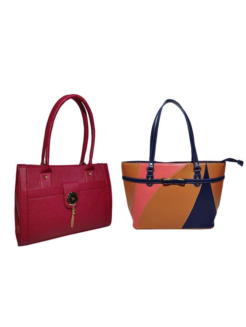 AZED Collections Women's PU Leather Handbag - Combo Pack of 2 -Maroon & Tan (H003MN_H005TN)
