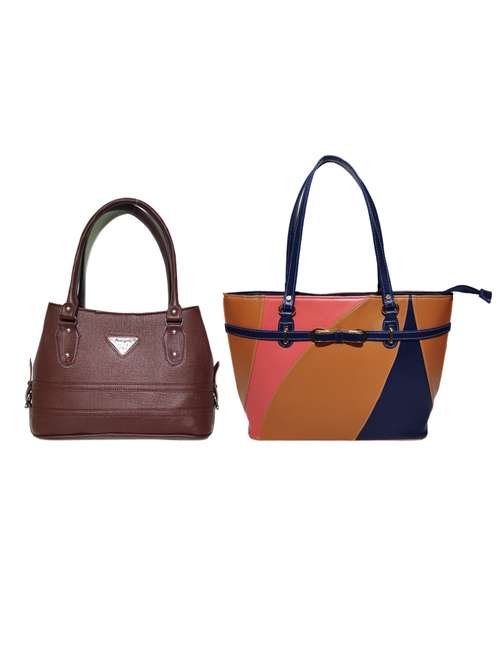 AZED Collections Women's PU Leather Handbag - Combo Pack of 2 -Brown & Tan (H004BN_H005TN)