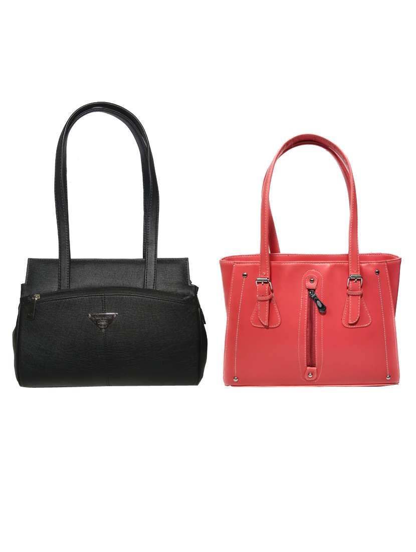 AZED Collections Women's PU Leather Handbag - Combo Pack of 2 -Black & Purple (H001BK_H007PL)