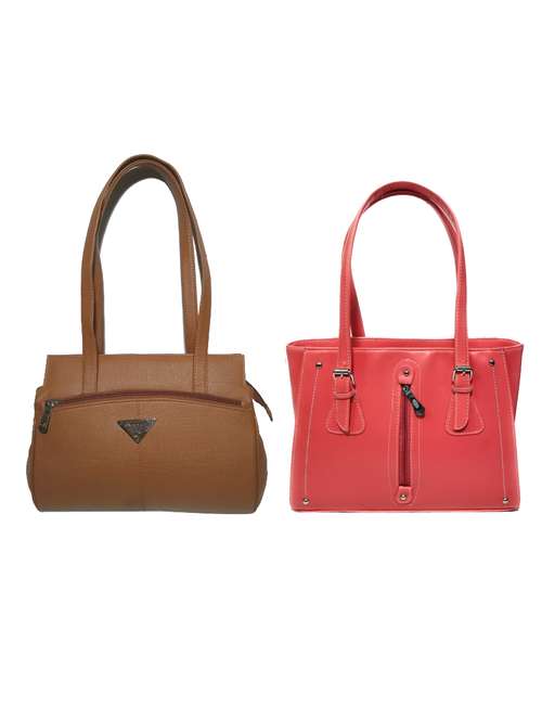 AZED Collections Women's PU Leather Handbag - Combo Pack of 2 -Tan & Purple (H001TN_H007PL)