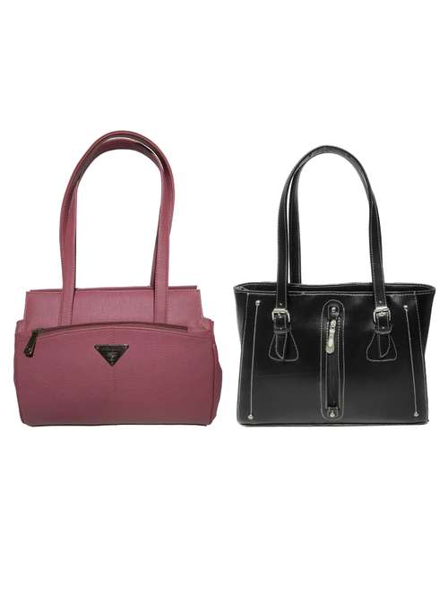 AZED Collections Women's PU Leather Handbag - Combo Pack of 2 -Purple & Black (H001PL_H007BK)