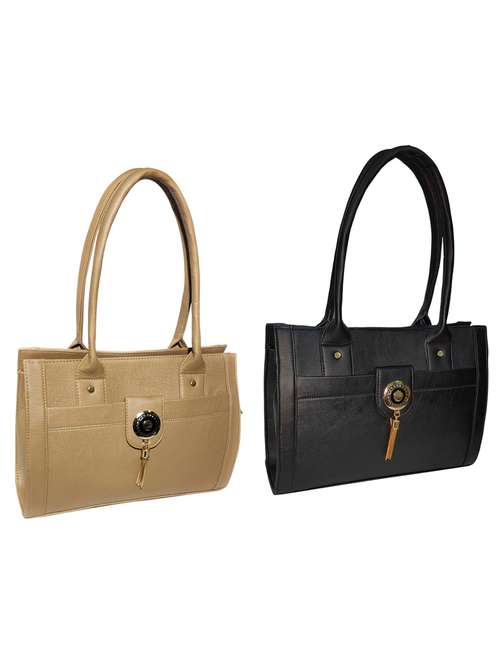 AZED Collections Women's PU Leather Handbag - Combo Pack of 2 -Black & Khaki (H003BK_H003KK)