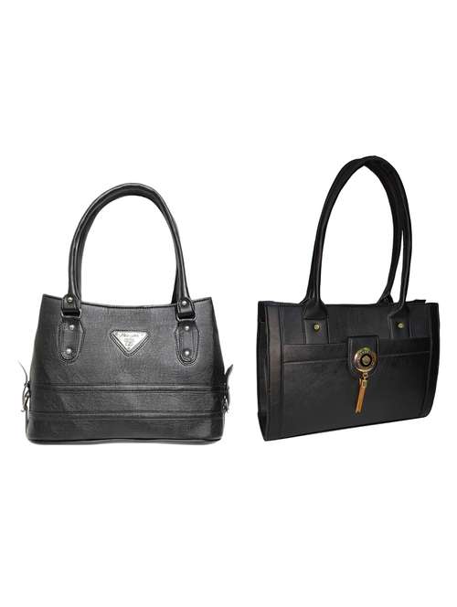 AZED Collections Women's PU Leather Handbag - Combo Pack of 2 -Black & Black (H003BK_H004BK)