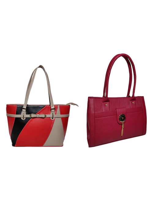 AZED Collections Women's PU Leather Handbag - Combo Pack of 2 -Maroon & Red (H003MN_H005RD)
