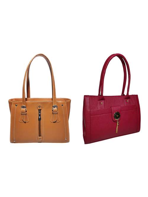 AZED Collections Women's PU Leather Handbag - Combo Pack of 2 -Maroon & Tan (H003MN_H007TN)