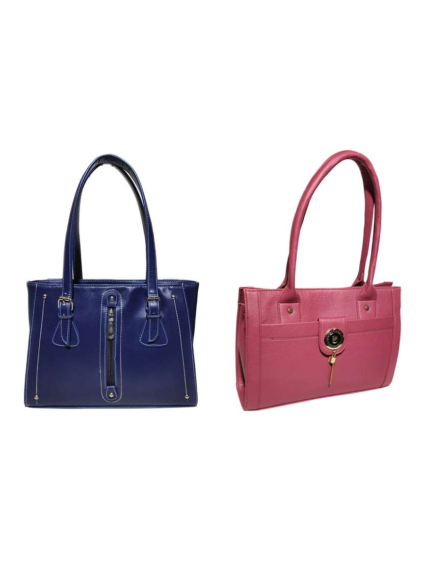 AZED Collections Women's PU Leather Handbag - Combo Pack of 2 -Purple & Blue (H003PL_H007BL)