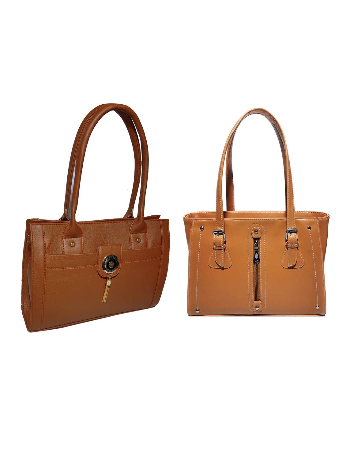 AZED Collections Women's PU Leather Handbag - Combo Pack of 2 -Tan & Tan (H003TN_H007TN)