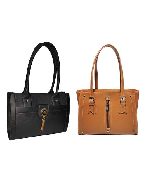 AZED Collections Women's PU Leather Handbag - Combo Pack of 2 -Black & Tan (H003BK_H007TN)