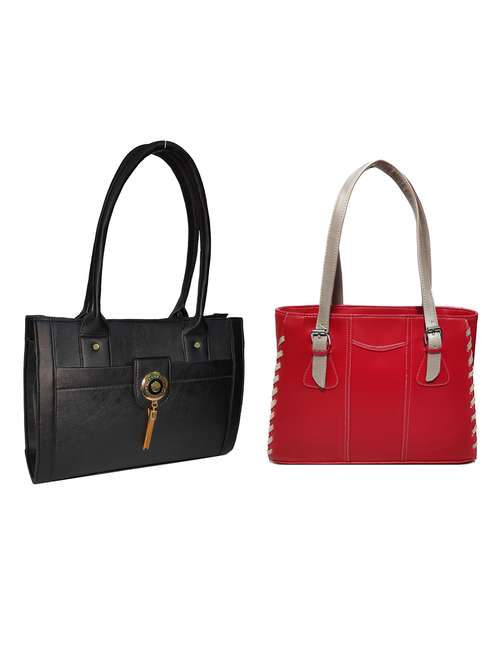 AZED Collections Women's PU Leather Handbag - Combo Pack of 2 -Black & Red (H003BK_H008RD)