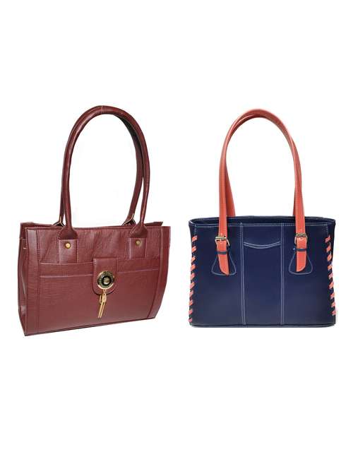 AZED Collections Women's PU Leather Handbag - Combo Pack of 2 -Brown & Blue (H003BN_H008BL)