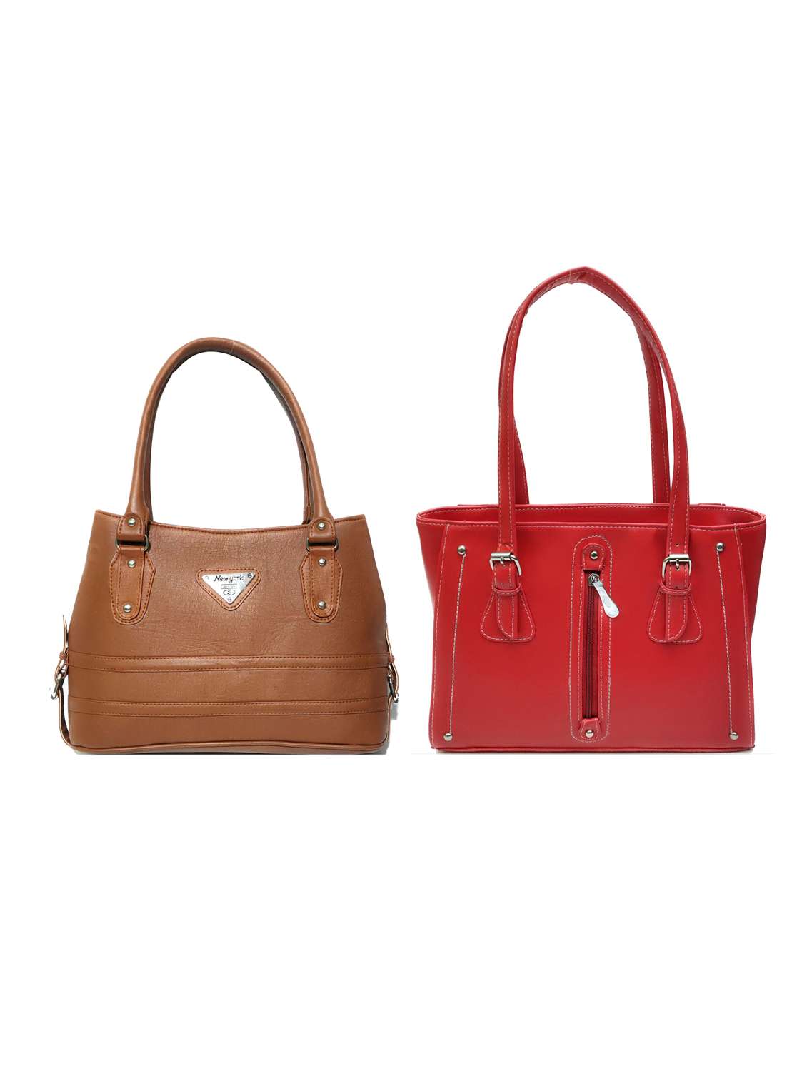 AZED Collections Women's PU Leather Handbag - Combo Pack of 2 -Tan & Red (H004TN_H007RD)