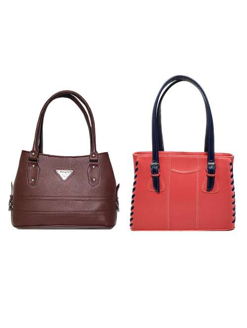 AZED Collections Women's PU Leather Handbag - Combo Pack of 2 -Brown & Purple (H004BN_H008PL)