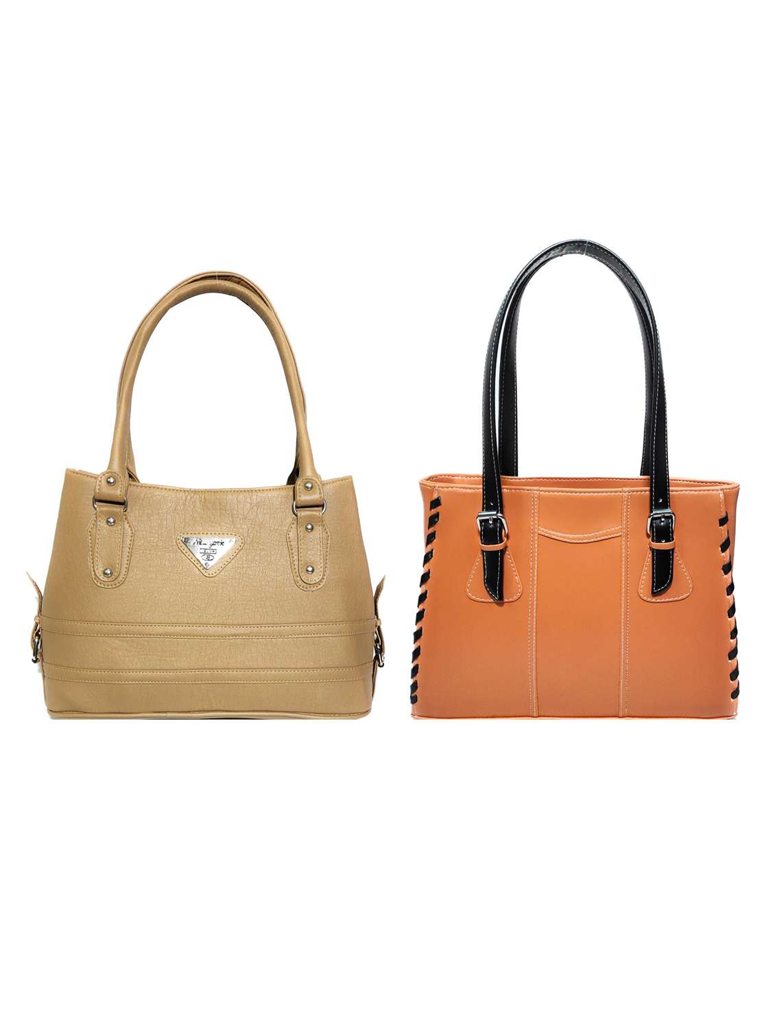 AZED Collections Women's PU Leather Handbag - Combo Pack of 2 -Khaki & Tan (H004KK_H008TN)