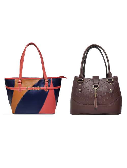 AZED Collections Women's PU Leather Handbag - Combo Pack of 2 -Blue & Brown (H005BL_H006BN)