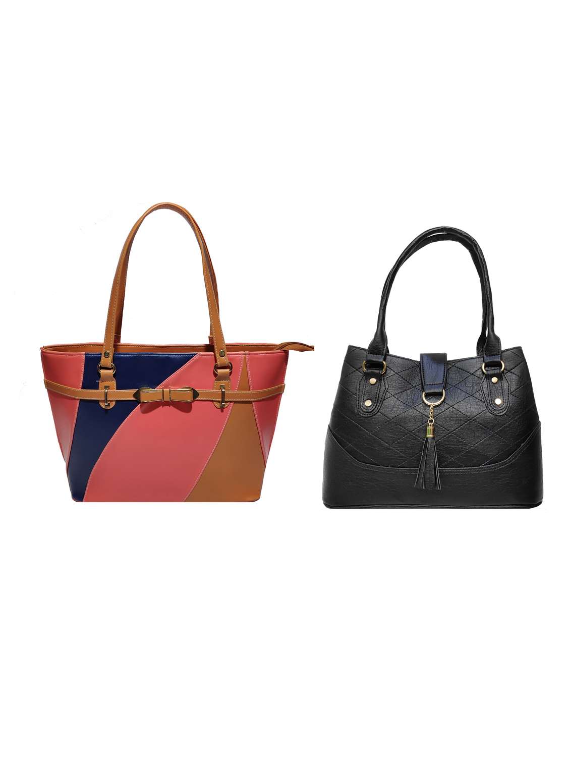 AZED Collections Women's PU Leather Handbag - Combo Pack of 2 -Pink & Black (H005PK_H006BK)