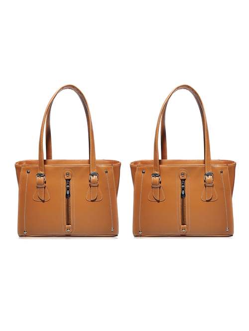 AZED Collections Women's PU Leather Handbag - Combo Pack of 2 -Tan & Tan (H007TN_H007TN)