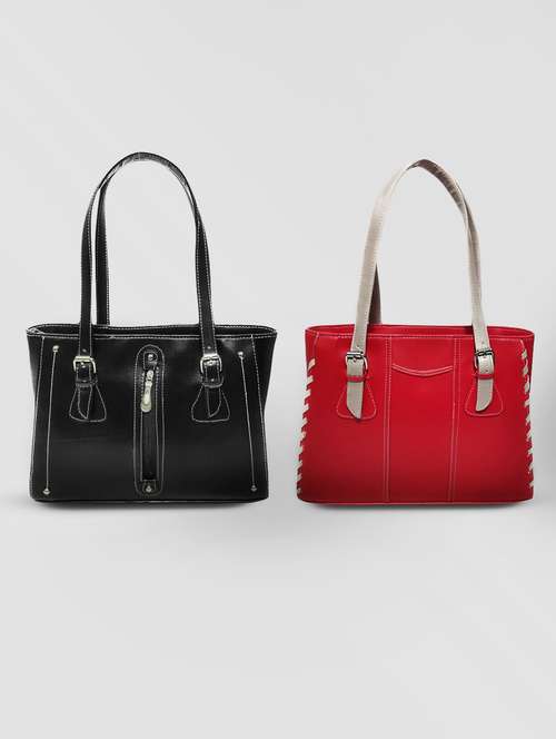 AZED Collections Women's PU Leather Handbag - Combo Pack of 2 -Black & Red (H007BK_H008RD)