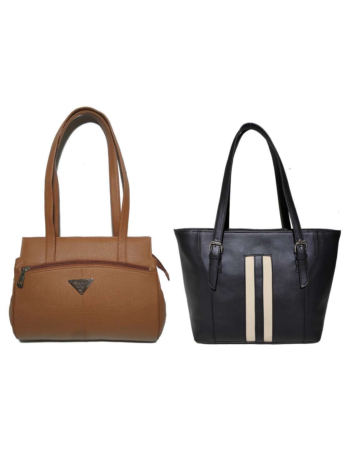 AZED Collections Women's PU Leather Handbag - Combo Pack of 2 -Tan & Black (H001TN_H009BK)