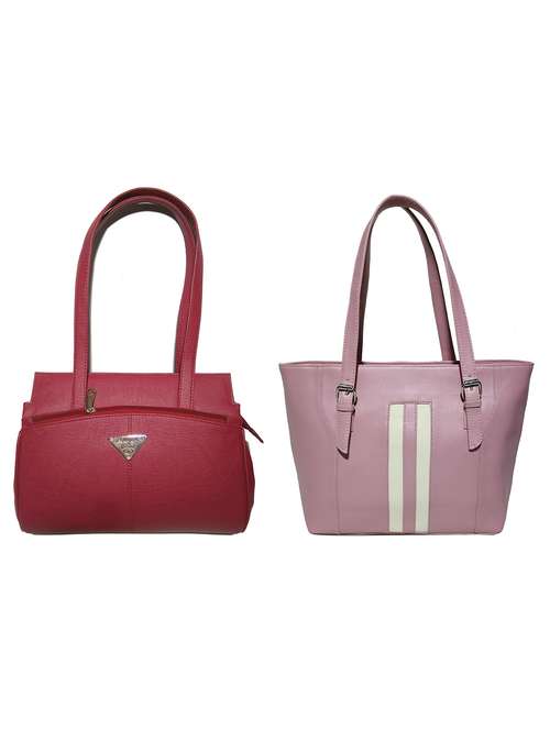 AZED Collections Women's PU Leather Handbag - Combo Pack of 2 -Maroon & Pink (H001MN_H009PK)