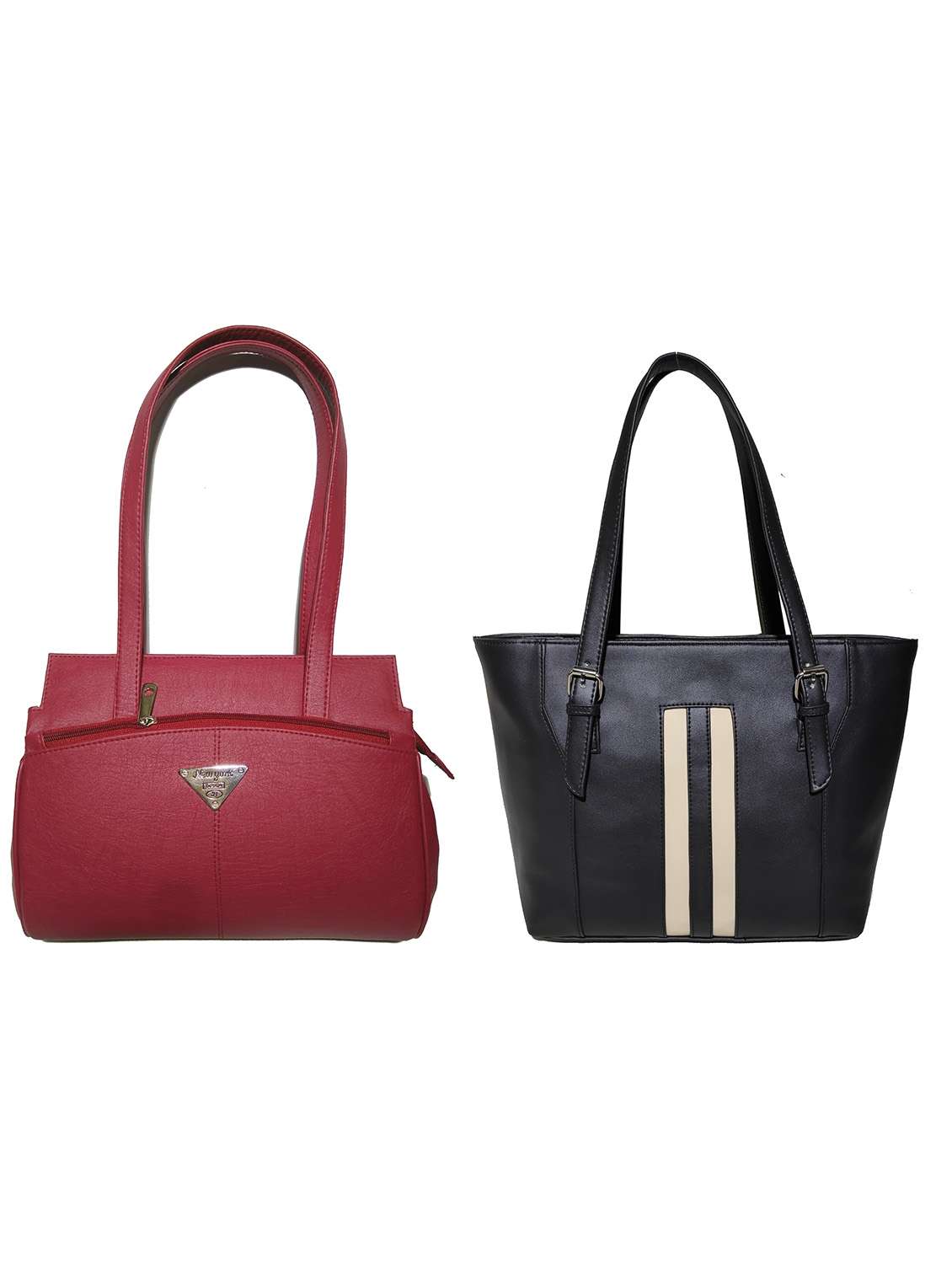 AZED Collections Women's PU Leather Handbag - Combo Pack of 2 -Maroon & Black (H001MN_H009BK)