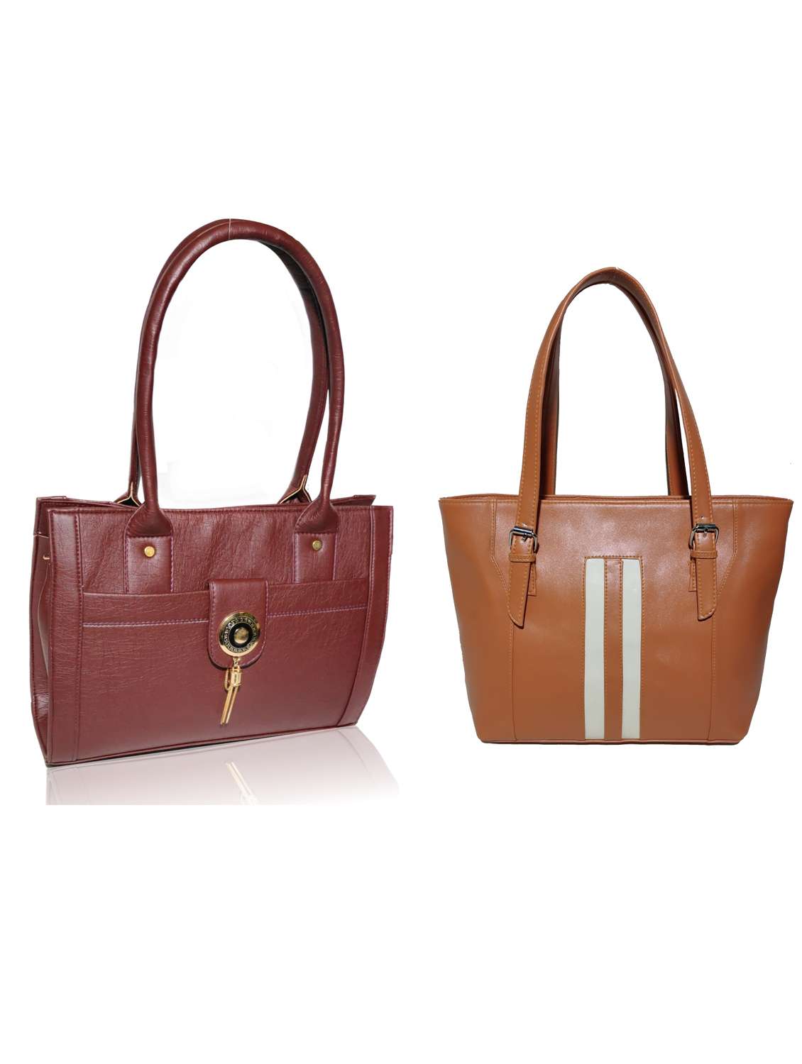 AZED Collections Women's PU Leather Handbag - Combo Pack of 2 -Brown & Tan (H003BN_H009TN)