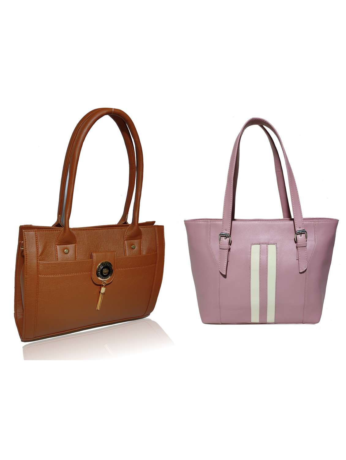 AZED Collections Women's PU Leather Handbag - Combo Pack of 2 -Tan & Pink (H003TN_H009PK)
