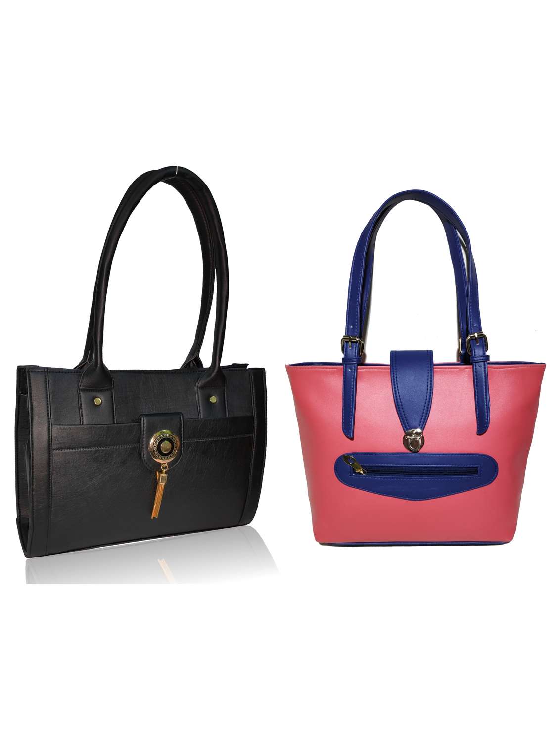 AZED Collections Women's PU Leather Handbag - Combo Pack of 2 -Black & Red (H003BK_H010RD)