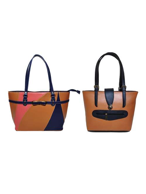 AZED Collections Women's PU Leather Handbag - Combo Pack of 2 -Tan & Tan (H005TN_H010TN)