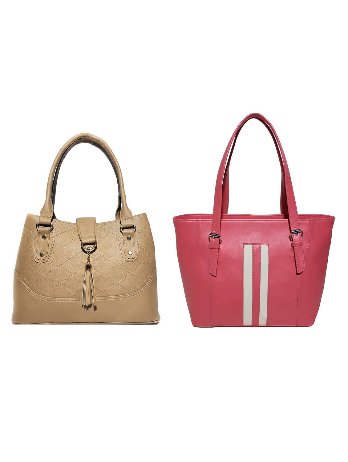 AZED Collections Women's PU Leather Handbag - Combo Pack of 2 -Khaki & Red (H006KK_H009RD)