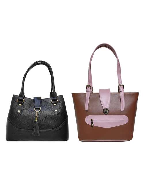 AZED Collections Women's PU Leather Handbag - Combo Pack of 2 -Black & Brown (H006BK_H010BN)