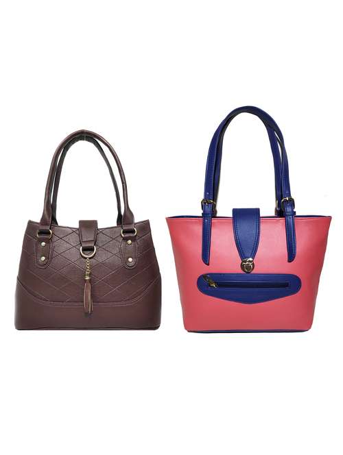 AZED Collections Women's PU Leather Handbag - Combo Pack of 2 -Brown & Red (H006BN_H010RD)