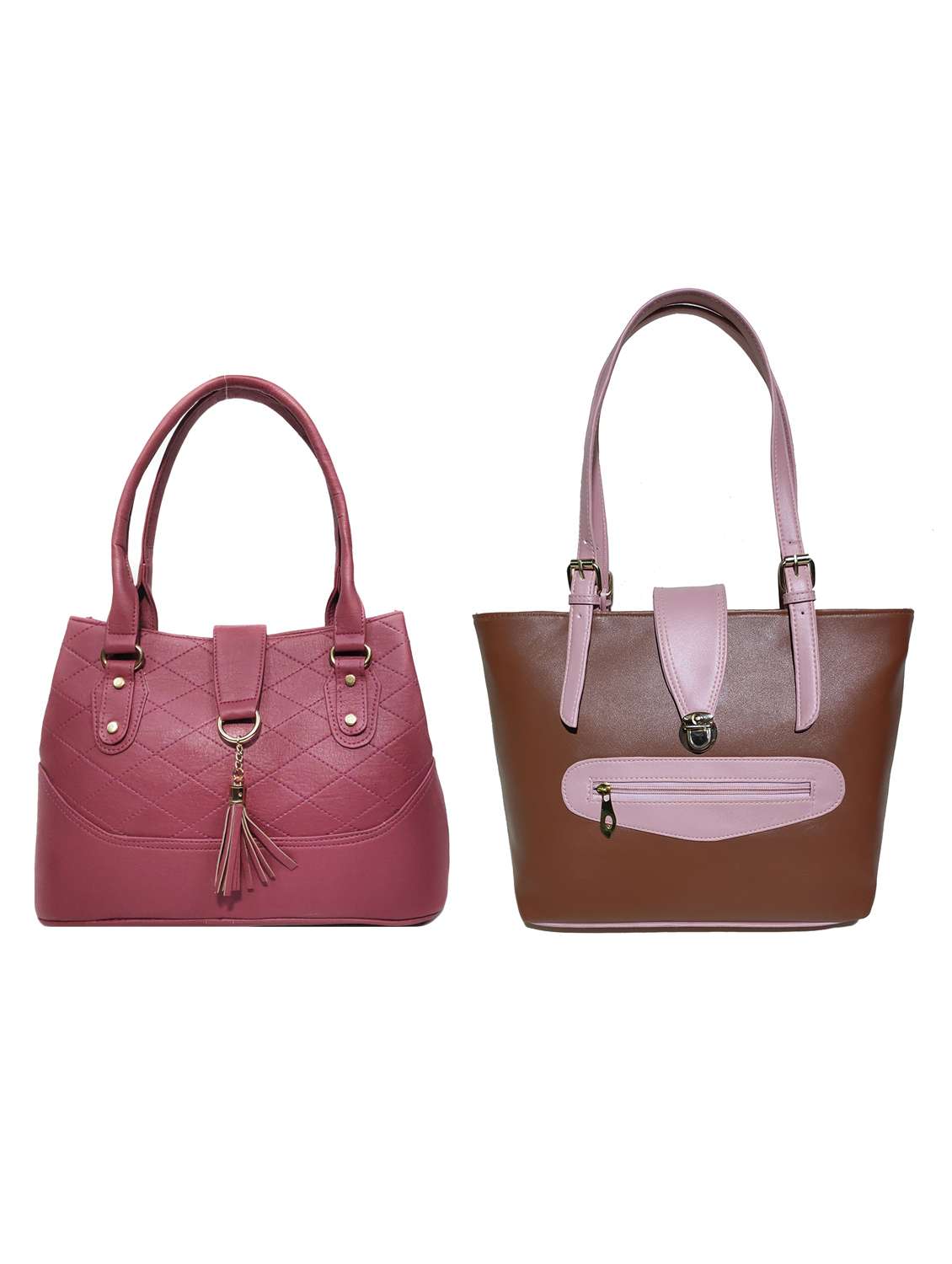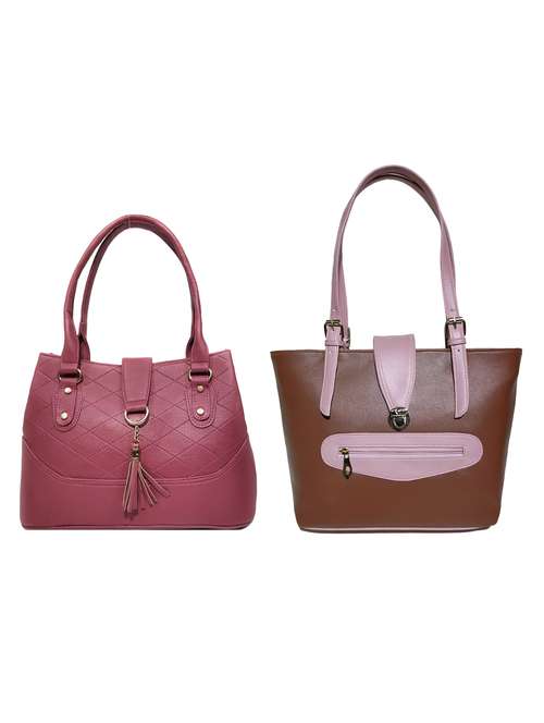 AZED Collections Women's PU Leather Handbag - Combo Pack of 2 -Purple & Brown (H006PL_H010BN)