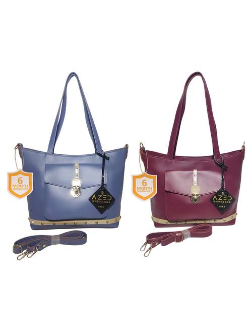 AZED Barcelona Women's PU Leather Handbag - Combo Pack of 2 -Blue & Maroon - 6 Months Warranty (H011BL_H011MN)