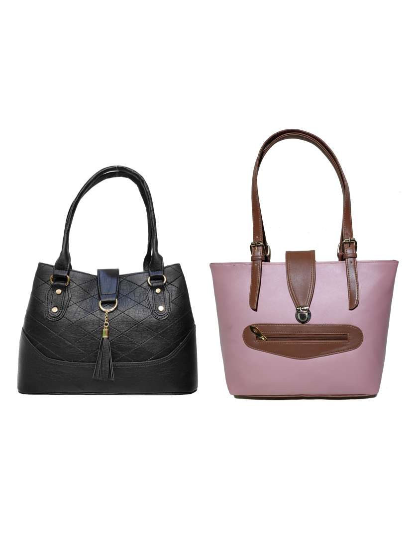 AZED Collections Women's PU Leather Handbag - Combo Pack of 2 -Black & Pink (H006BK_H010PK)